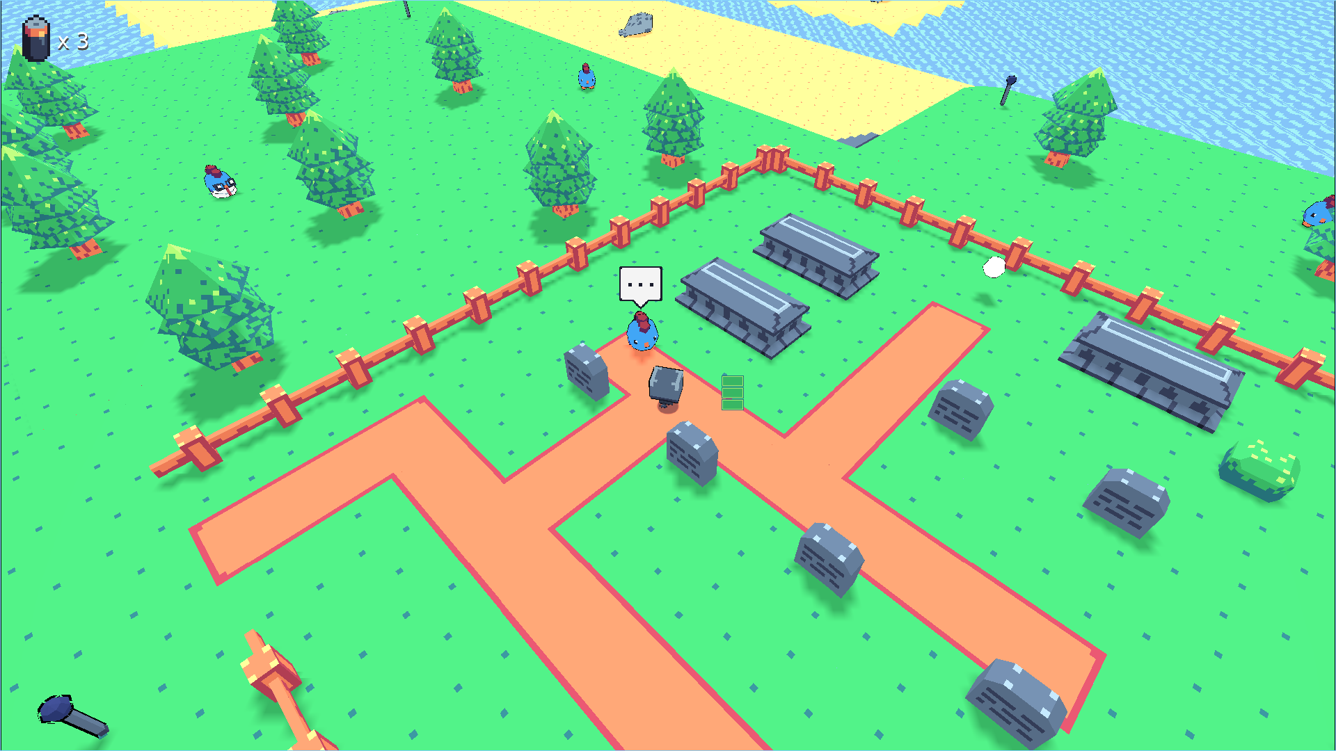 - Explore a small open area and find collectibles as you go.